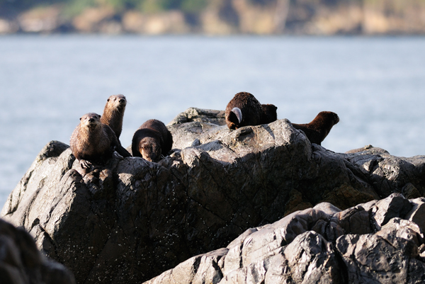 A Romp of Otters October 2, 2008 Bryn Leave a comment Did you know a group of otters is called a romp? (thanks Jay) These are a romp of river otters at French Beach park on Vancouver Island last weekend. I managed to get about 4 frames before a boat scared them away.